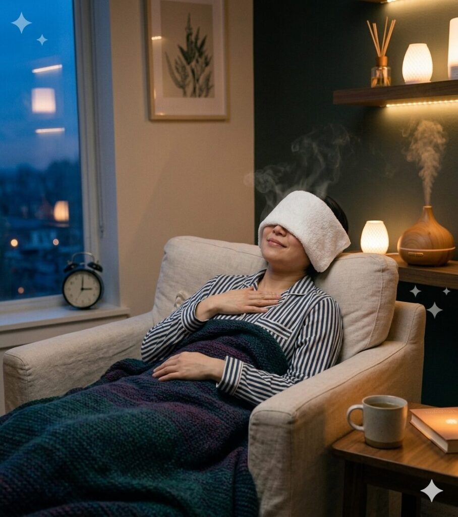 ご自宅では、寝る前の「目元」のケアがおすすめです。 蒸しタオルなどで目元を温めるだけで、視神経の緊張が解け、自律神経がリラックスモードに切り替わりやすくなります。スマホは寝る30分前には置いて、目と脳を休ませてあげましょう。