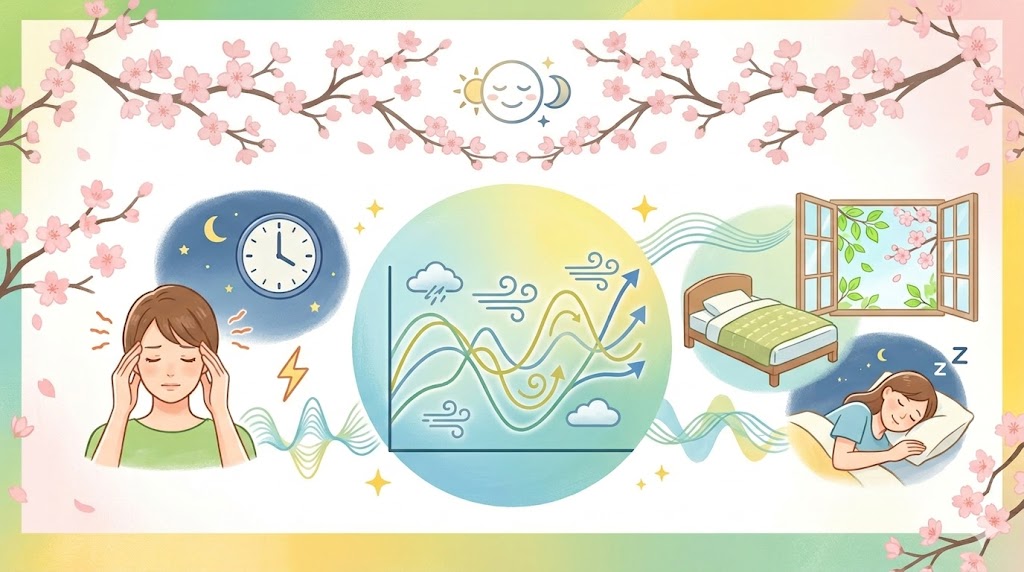 「春 頭痛 気圧 不眠」でお悩みの方へ。この時期特有の気圧変化による体調不良を、自律神経の観点から紐解きます。 「なんだか頭が重い」「布団に入っても目が冴えてしまう……」この時期、同じようなご相談が増えています。 春は桜の季節で華やかですが、実...